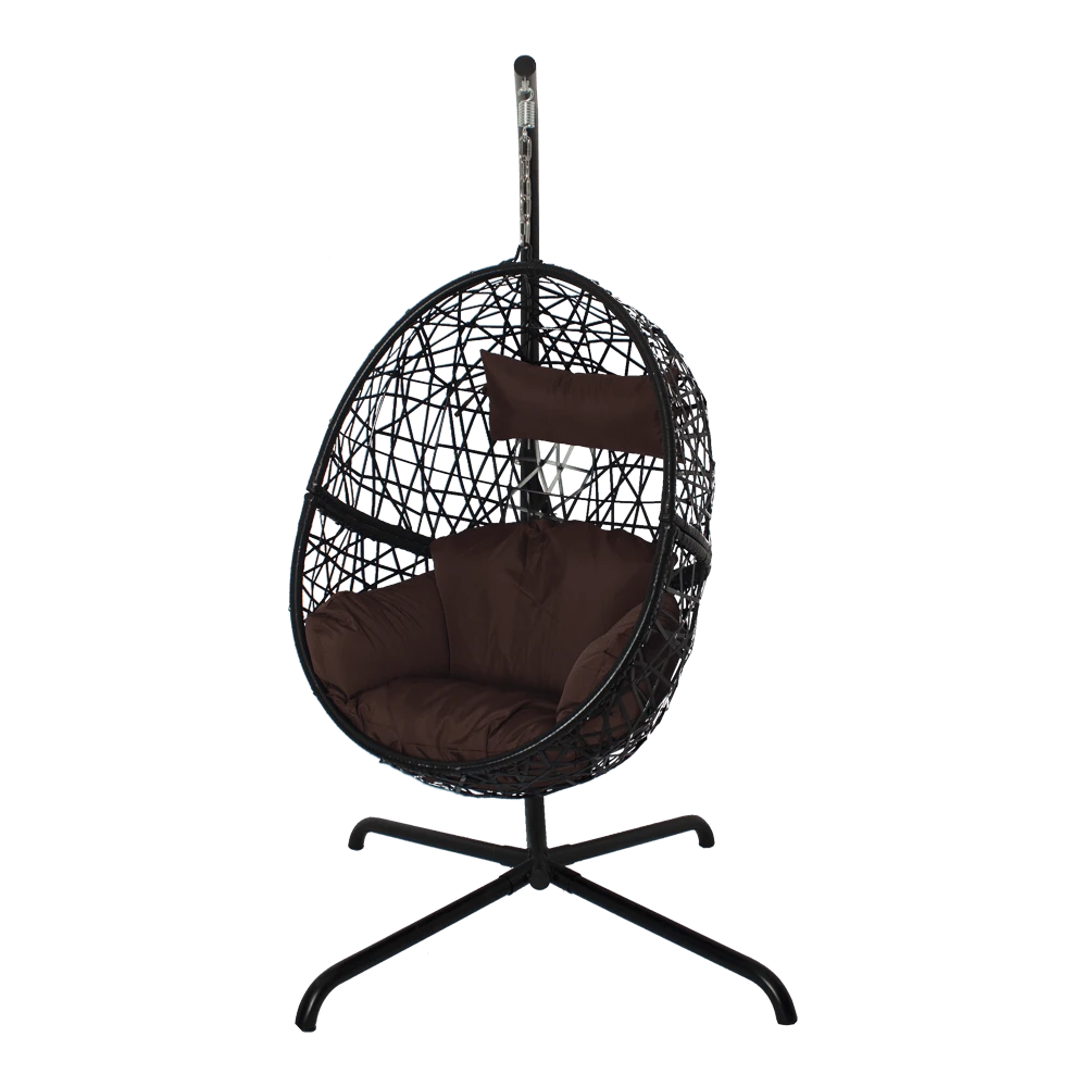 De hangstoel Laos heeft een zwart frame en de het kussen is bruin van kleur. De hangstoel is gemaakt van hoogwaardig Wicker en gepoedercoat Staal. De Hangstoelen zijn verkrijgbaar in verschillende kleur en modellen. Bestel eenvoudig en goedkoop een hangstoel bij Biezen of bezoek eens onze showroom!
