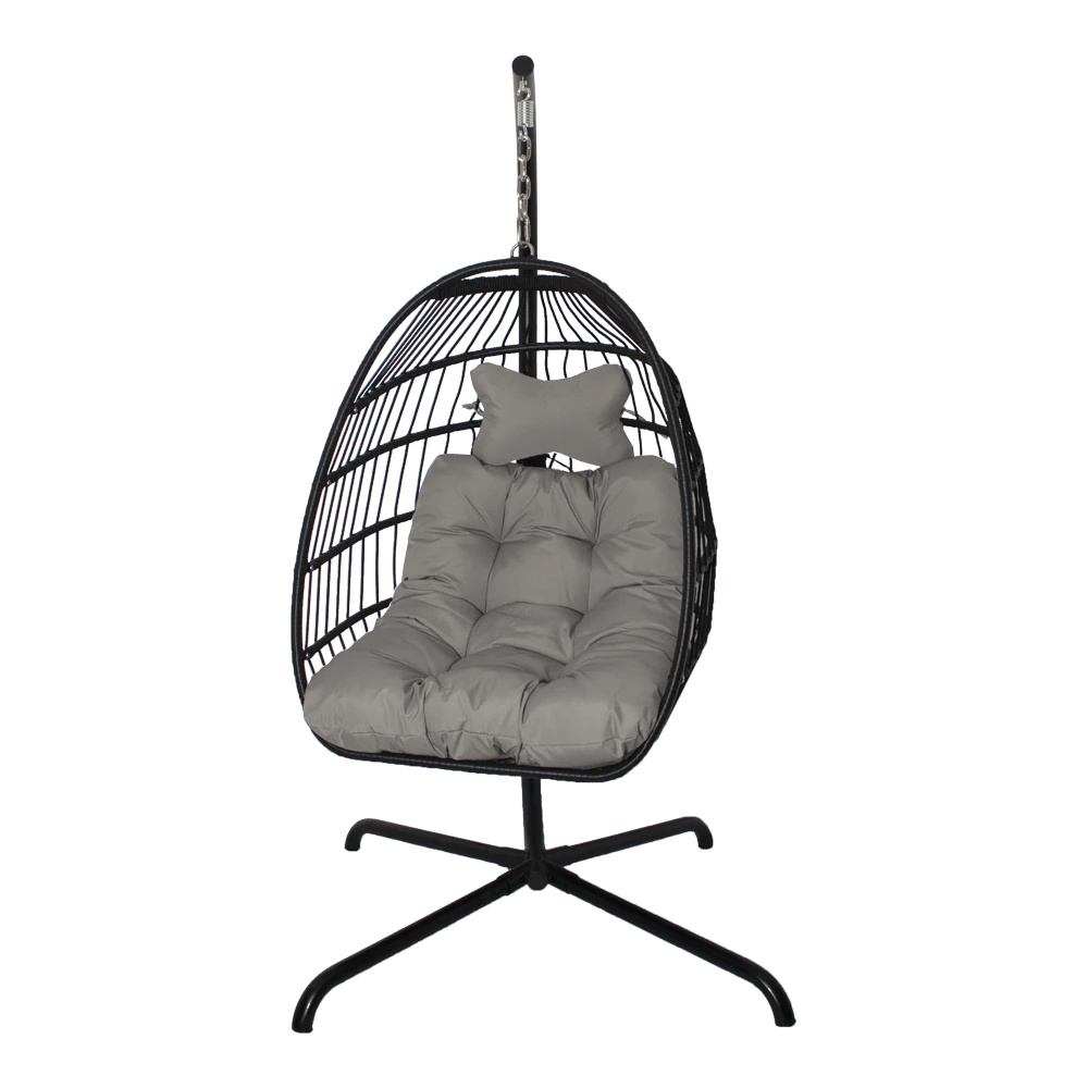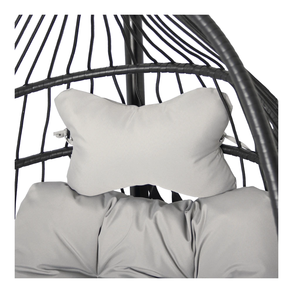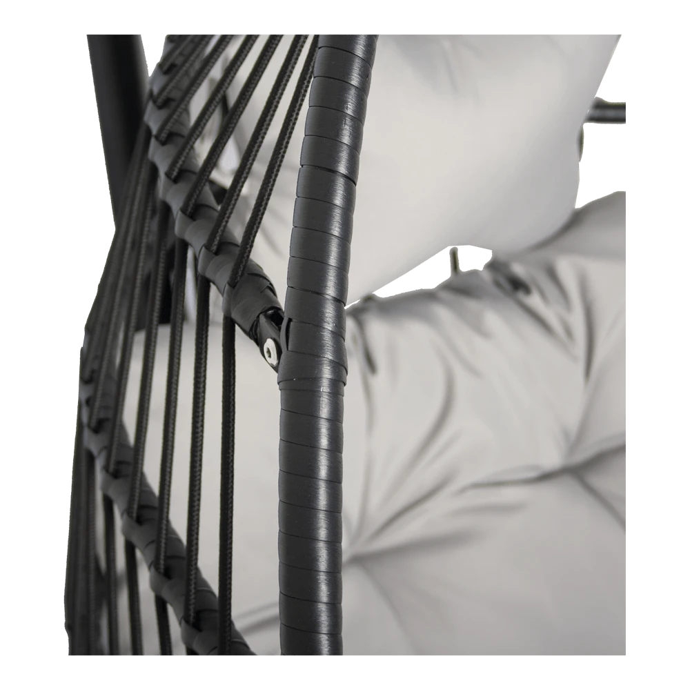 De hangstoel Norway heeft een zwart frame en het kussen heeft een grijze kleur. De hangstoel is gemaakt van hoogwaardig Olefin touw en gepoedercoat Staal. De Hangstoel Norway is inklapbaar en neemt hierdoor weinig ruimte inbeslag. De Hangstoelen zijn verkrijgbaar in verschillende kleur en modellen. Bestel eenvoudig en goedkoop een hangstoel bij Biezen of bezoek eens onze showroom!