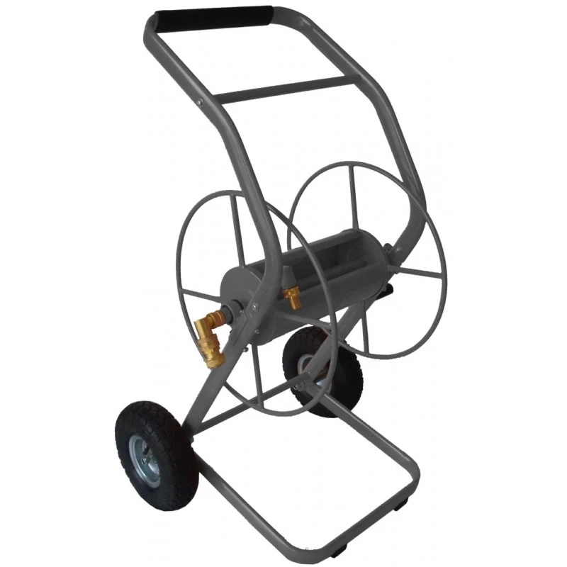 Deze slanghaspel is geschikt voor het opbergen of verplaatsen van een tuinslang. Bij deze professionele slangenhaspel zitten messing aansluitkoppelingen 3/4 inch voor het monteren van de slang aan de haspel. In het wiel van de haspel zit een snelkoppeling voor het aansluiten van de tuinslang. Aan de zijkant van het wiel zit een snelkoppeling voor het aansluiten van de tuinslang aan de kraan, hiervoor zijn een stuk slang, een snelkoppeling en een kraannippel nodig. Aan de andere zijkant van de haspel zit een zwengel, hiermee kunt u de slang makkelijker oprollen. Deze slanghaspel is robuust en blijft goed op de plek staan. De slanghaspel heeft twee luchtbanden.