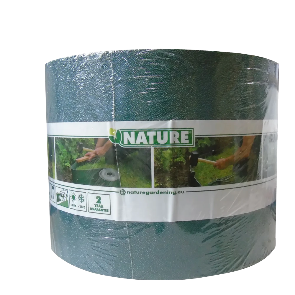 De groene rand van gerecycleerd polyethyleen is 10 m lang en 15 cm hoog. De dikte is 3 mm. De rand is UV-behandeld. Elk model heeft een gladde zijde en een zijde met structuur. Het product is bestand tegen schokken en temperatuurschommelingen. De grens is flexibel. Daarom kan hij worden aangepast aan allerlei bochten en vormen voor de afbakening van een pad, een perk, enz. Gemakkelijk te installeren door het in de grond te begraven, gewoon een geul graven en de border erin steken, waarbij hij enkele centimeters boven de grond blijft. Je kunt de rand handhaven met bevestigingsankers (niet meegeleverd). Zij zijn beschikbaar in onze winkel en webshop.